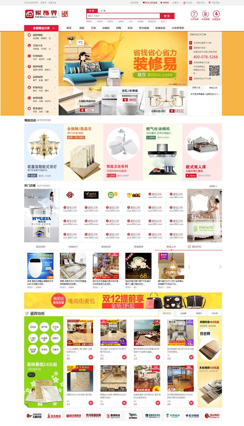 概念上家饰界是您的爱家除毛坯房以外,所有家庭应用这里都可以为您提供。目前第一期产品模块从基础材料的瓷砖卫...